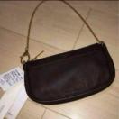 落ち着いた本革ダークブラウンにゴールドチェーンがとてもエレガント。