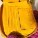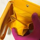 持っているだけで気分も手元も明るくなる、鮮やかなイエローカラーのお財布です。風水において「金運を呼び込む」と言われる黄色をベースにした、縁起の良いデザインが魅力です。