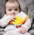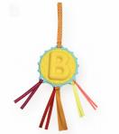 ガラガラ、触るレリーフ、歯固めリング、リング内に小さなカラービーズが渦巻いて可愛らしく、リボンがヒラヒラと色々な要素があって飽きないです♪