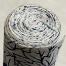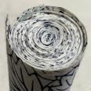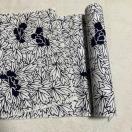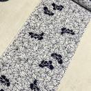 白地に牡丹の柄が染められた美しいデザインの反物です。