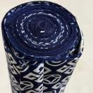 濃紺の地に可愛らしい柄が染め抜かれた反物です。