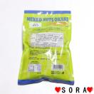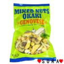 中身はあられ、アーモンド、カシューナッツ、とうもろこし加工品 濃厚なチーズと香り豊かなバジルが合わさるパンチの効いたジェノベーゼ風味に仕上げました