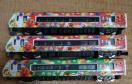 アンパンマンのキャラクターが描かれた可愛らしい列車のおもちゃ、3両セットまとめ売りです。子供部屋の飾りや、おもちゃとしてお楽しみいただけます。
