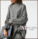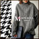 〜3L4L5L*千鳥格子×ヘリンボーンMIX切替ハイネックニットトッ