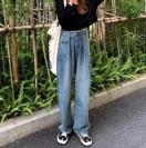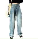 ジーンズ バギーパンツ 韓国服 オルチャン パンツ デニム ブルー 青 ハイウエスト ロング 安い シーイン SHEIN