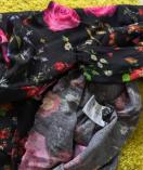 柔らかく大変軽くまた伸縮性ございます人気のチュール素材、また大人気のミクスチャーフラワープリントデザインです。