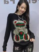 キラキララインストーン付きクマ柄カットソー