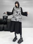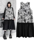 ノースリーブ ロング丈ワンピース フリル付き 異素材 大きいサイズ