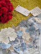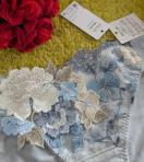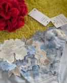 民族衣装をヒントにした1970年代のフォークロアファッション。その独特なカラーリングと懐かしい雰囲気を、サルートらしく昇華しました。多色使いのアップリケ、レースに刺繍を重ねた豪華さ。劇的に美しい店舗限定商品グループです。