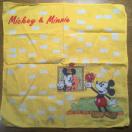ミッキーとミニーのイラストが描かれたイエローのタオル。