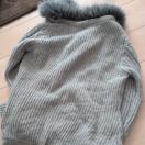 ファー付きのケーブルニットカーディガン(グレー)です。暖かみのあるケーブル編みデザインで、首元のファーがアクセントになっています。これからの季節にぴったりな一枚です。他商品と一緒でゴミついているかもしれません。締切日時
