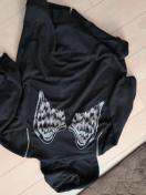 黒色のジップアップパーカーです。背面に特徴的な翼のプリントがあります。普段使いしやすいシンプルなデザインです。2回くらいきてそれ以降着なくなりました。他商品と一緒に保管でゴミついているかもしれません