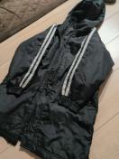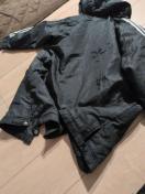 画像のアディダスのようなデザインのベンチコートまたはロングコートです。ブランドのロゴやバーコードなどの詳細情報は現在不明です。画像をご確認の上、ご検討ください。