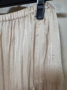 2ヶ月前に店頭で38,000円で購入。フリーサイズ、裏地ございます。光沢のあるニュアンスベージュ系、上品なスカートです。合わせ方でキレイめにもカジュアルにも着こなせますよ。季節を問わず通年履けるのでお得感あり。ルーズめのニットで緩く合わせてこなれた雰囲気に。また、ボーダー合わせも可愛いですよ。季節に合わせてサンダル、フラットシューズ、ローファー、ブーツなどどれにも合います。かさばらないので旅行にも重宝しますよ。合わせている洋服、バッグは参考例です。お好きな方いかがでしょうか。レタパライト発送予定、ノークレームノーリターンでお願いします。締切日時