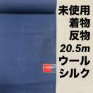 未使用 メンズ アンサンブル 着物反物 紋御召 シルク混 ウール 紺 青