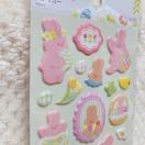 イースター ウサギと花のデザインのかわいいぷくっとシール、ステッカーシート