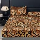 3点セット レオパードプリント フィットシーツセット, オールシーズン対応マットレスプロテクター, おしゃれでクラシックな柔らかく快適なディープポケット通気性ベッドセット, 寝室・ゲストルーム用デコレーション. フィットシーツ1枚 + 枕カバー2枚, 中綿なし