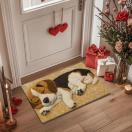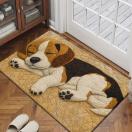フランネル+1cm厚スポンジ素材 おもしろドアマット | 刺繍風寝ている子犬デザイン、柔らかいカラー、精巧なディテール。寝室、キッチン、ダイニングルーム、バスルームなどに最適なプリントドアマット、滑り止め付き、洗濯機対応、多機能フランネルマット、柔らかく快適で実用的、ホリデーデコレーション