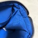 お洒落な配色: 外側の落ち着いたネイビー×ホワイトに加え、内側は鮮やかなブルー系。バッグを開けるたびに少し気分が上がるような、こだわりのカラーリングです。
