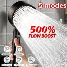 【5モード】高性能ブラック高圧ハンドヘルドシャワーヘッド|500%水流増強、節水、調整可能、耐久性プラスチック製、敏感肌に最適、ユニバーサルインサート設置、家庭用バスルーム&キャンピングカー蛇口に最適、モダンなバスルームアクセサリー