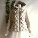 フロントの立体的な編み込みデザインが印象的な異素材切替フードダウンジャケットです。
