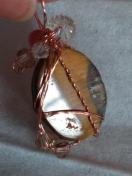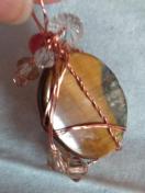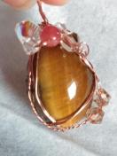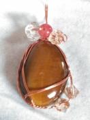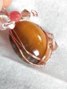 タイガーアイのルースを銅ワイヤーで巻きました。
