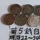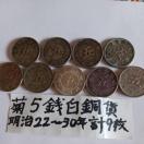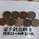 5銭白銅貨は明治0220年〜30年迄発行されています、こちらはその全年号の9枚の出品になります。締切日時