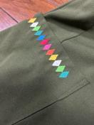 シワになりにくく透け感もないエンボス加工の扱い易い生地で、ポケットにはカラフルな刺繍入りがワンポイント。
