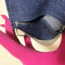 詳細: 使用に伴う細かなスレや、デニム特有の端部分の微細な色落ち、薄い汚れが見受けられます。