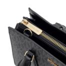 ■詳細説明/【人気商品】、<サッチェル>MKシグネチャー2Wayバッグ(ショルダーバッグ、ハンドバッグ),取り外し可能なショルダーストラップ(長さ:110.0〜128.5cm(7段階調整可能)、幅:1.5cm),ハンドル(持ち手)の長さ:24.5cm,ライトゴールド金具,前面&背面にマチ付きオープンポケット,ファスナー開閉式,中にオープンポケット,中の内張りロゴ入り