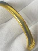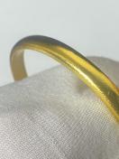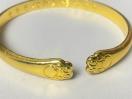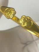 アンティーク感漂う**「古金」**仕上げが施されており、派手すぎず重厚感のある輝きを放ちます。両端の肉球デザインが非常に可愛らしく、開口タイプ(オープンカフ)なのでサイズ調整も可能です。