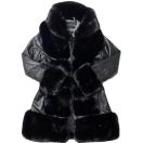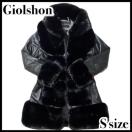 ◆ Giolshon ブラック フェイクファー フェイクレザー ロングコート S