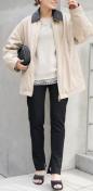 少しゆとりあるシルエットは安心感のある着心地です。ウエストも伸縮性があるので楽にはいていただけると思います。