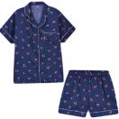 ◆GU Navy チェリー柄 半袖 サテン ルームウェア 部屋着 パジャマ