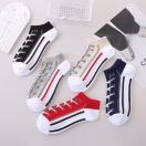 5足組ユニセックスオールシーズンアンクルソックス - 通気性吸湿・滑り止め機能付きジオメトリックストライプデザイン、ハイキング・ジム・カジュアルウェア用(アソートカラー)、吸湿ファブリック