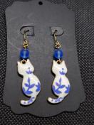 青い花模様の入った白猫チャームと