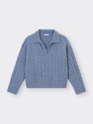 襟付きスキッパーネックで首元に抜け感のあるケーブル編みニットです*・゜