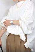 後ろボタンボリューム袖ブラウス