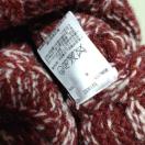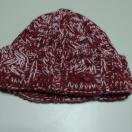 赤と白のケーブル編みデザインのウールニット帽。