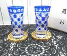 ★【新品・未使用】切子グラス 藍彩(あいさい) 2個セット バンブーコースター付
