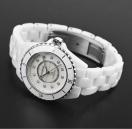 こちらは2024年新作のホワイトセラミック製の33mmケースのレディースモデルです。