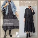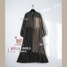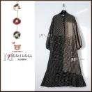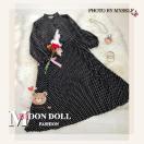┗黒地に白のドット柄が映える大人っぽさと可愛らしさを兼ね備えたロングワンピース