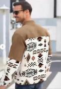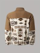 【メンズ】カジュアル ジップアップ カーディガン ランダム エスニック プリント柄 カラーブロック ふわふわ生地
