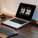 【持ち運び便利】折りたたみ式木製ノートパソコンスタンド - 12°調整可能なエルゴノミック角度、空洞三角形デザインで過熱防止、ノートPC/タブレット対応、コンパクト設計で収納も簡単