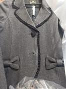 黒いサラッとした生地ジャケットでリボン、フリル付き。