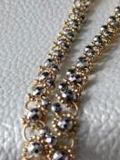 大小のプラチナミラーカットボールをイエローゴールドのカットボールが取り巻き、更に細身のリンクで連結された幅広のネックレス♪