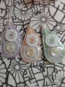SHENCAI製のクリアカラー修正テープ3色セット(パープル、グリーン、オレンジ系)です。