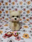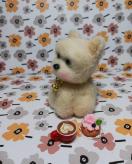可愛らしい羊毛フェルトのワンちゃんと、ミニチュアのカフェセットです。