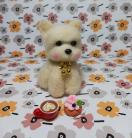 ふわふわのクリームの毛並みに、つぶらな瞳がとても愛らしいワンちゃんが、見る人の心を和ませます。