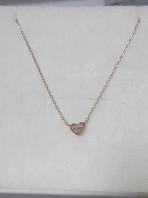 本製品は、シルバー素材に肌馴染みの良いピンクゴールドコーティングを施した、華やかで女性らしいネックレスです。 3粒のストーンが縦に並び、胸元で揺れるデザインがエレガントな印象を与えます。 アジャスターの先端にはブランドを象徴する可愛らしいプレートが配されており、細部までこだわりが感じられる逸品です。